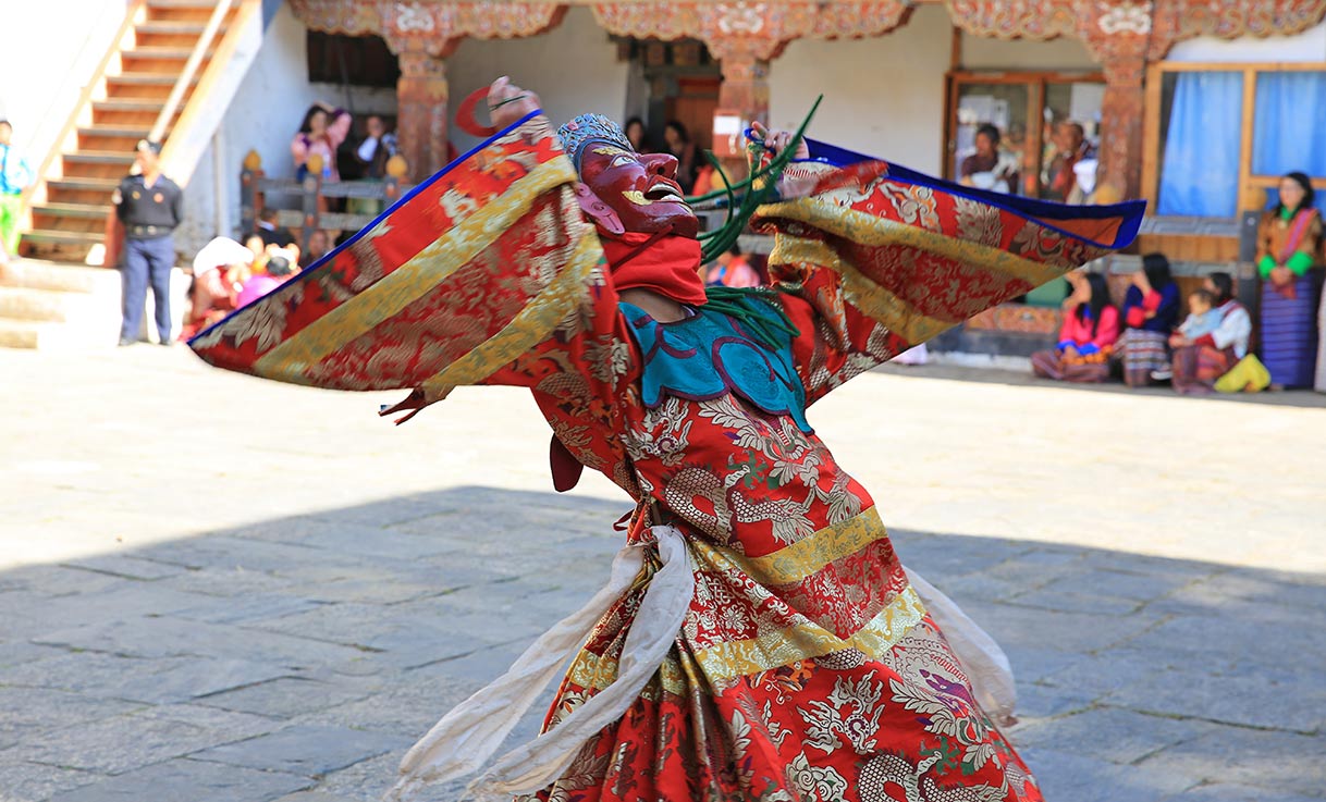Experience & learn the traditional Bhutanese Cham Dance - a colourful and vibrant, masked dance performed during annual Bhutanese festivals.